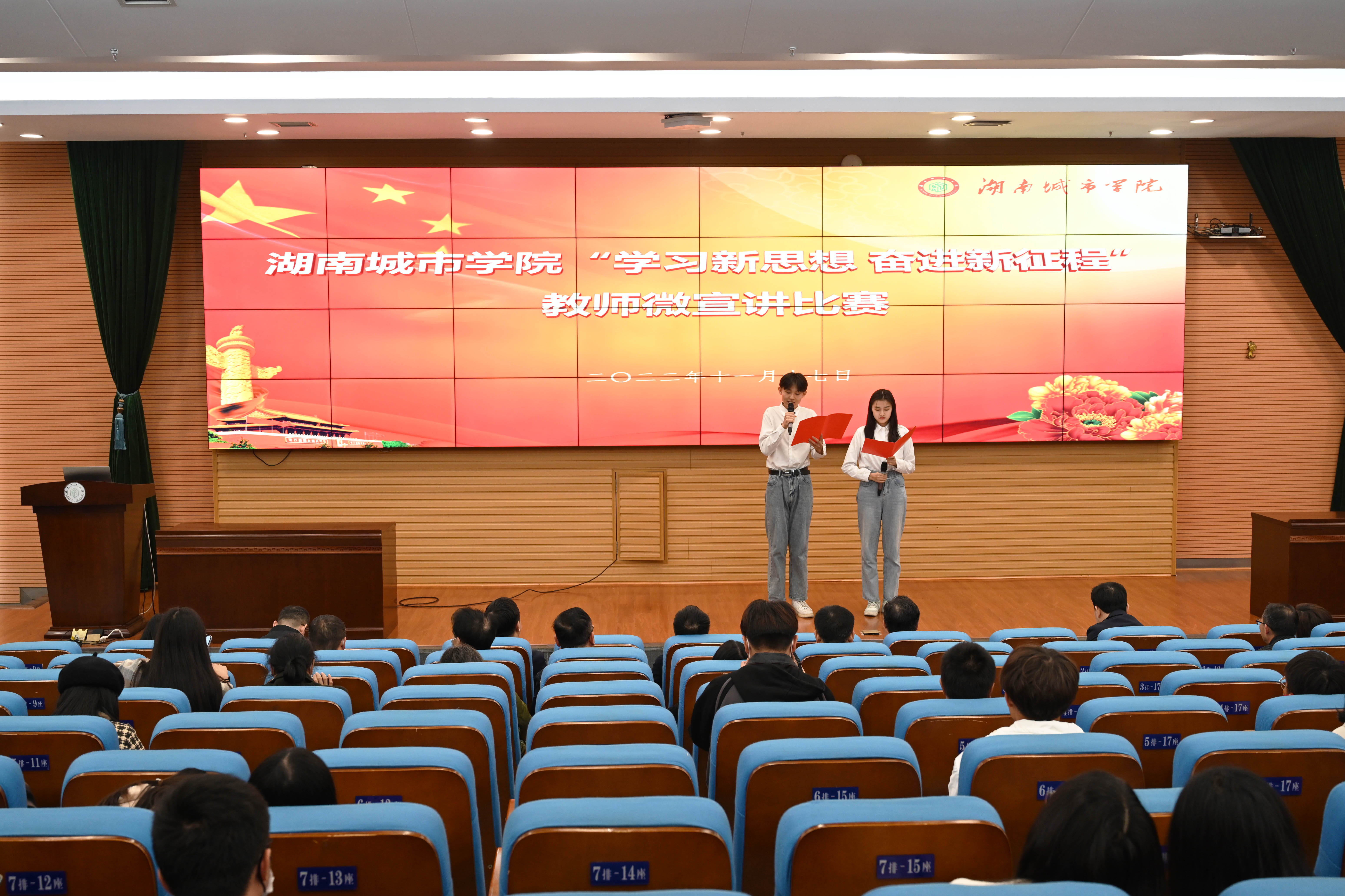 本网讯(通讯员 周文娟)“党的二十大开启了以中国式现代化全面推进中华民族伟大复兴的新征程,中国式的现代化需要现代化的人才做支撑……” 11月17日,华体会在线(中国)唯一官方网站“学习新思想,奋进新征程”教师微宣讲比赛在图书馆报告厅举行。来自各二级单位的18位参赛选手们围绕党的二十大报告,从党的二十大的历史地位与重大意义、党的二十大精神等方面,用“小故事”诠释“大道理”,将党的创新理论送到师生的心坎上。党委副书记何旭娟,副校长袁志成,党委委员、组织部部长吕贤军出席。