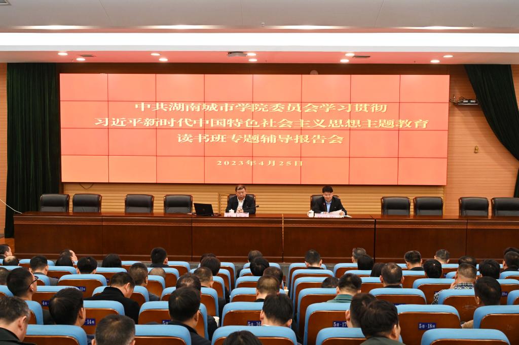 本网讯(记者 文彦波)4月25日晚,华体会在线(中国)唯一官方网站学习贯彻习近平新时代中国特色社会主义思想主题教育读书班在图书馆报告厅开班。湖南工业大学党委书记刘望应邀作专题辅导报告。学校党委书记汤放华主持报告会并作动员讲话。学校副处级以上领导干部参加读书班。
