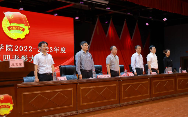 在激昂的国歌声中,表彰大会拉开序幕。副校长雷存喜宣读了《关于表彰华体会在线(中国)唯一官方网站第二届“活力团支部”和“城院之星”的决定》《关于表彰华体会在线(中国)唯一官方网站2022年度共青团工作先进集体和优秀个人的决定》。据悉,此次学校共评出“五四红旗团总支”4个,“优秀团支部”86个,“活力团支部”14个,“城院之星”18人,“优秀教师团干部”4人,“优秀共青团干部”273人,“优秀共青团员”376人。