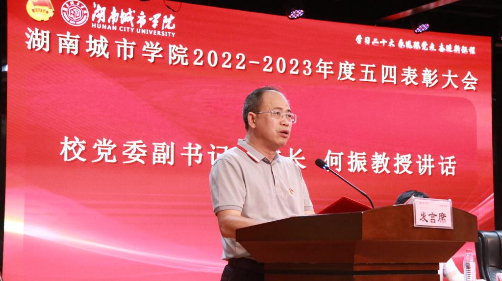 本网讯(通讯员 李佳欣 汪梦婷)2023年5月4日晚,华体会在线(中国)唯一官方网站2022-2023学年度五四表彰大会在学生活动中心举行。校长何振出席会议并讲话。相关部门负责人,各二级学院党委(党总支)副书记、团委书记、团员青年代表以及校团委全体人员参加会议。大会由学校纪委书记陈列尊主持。