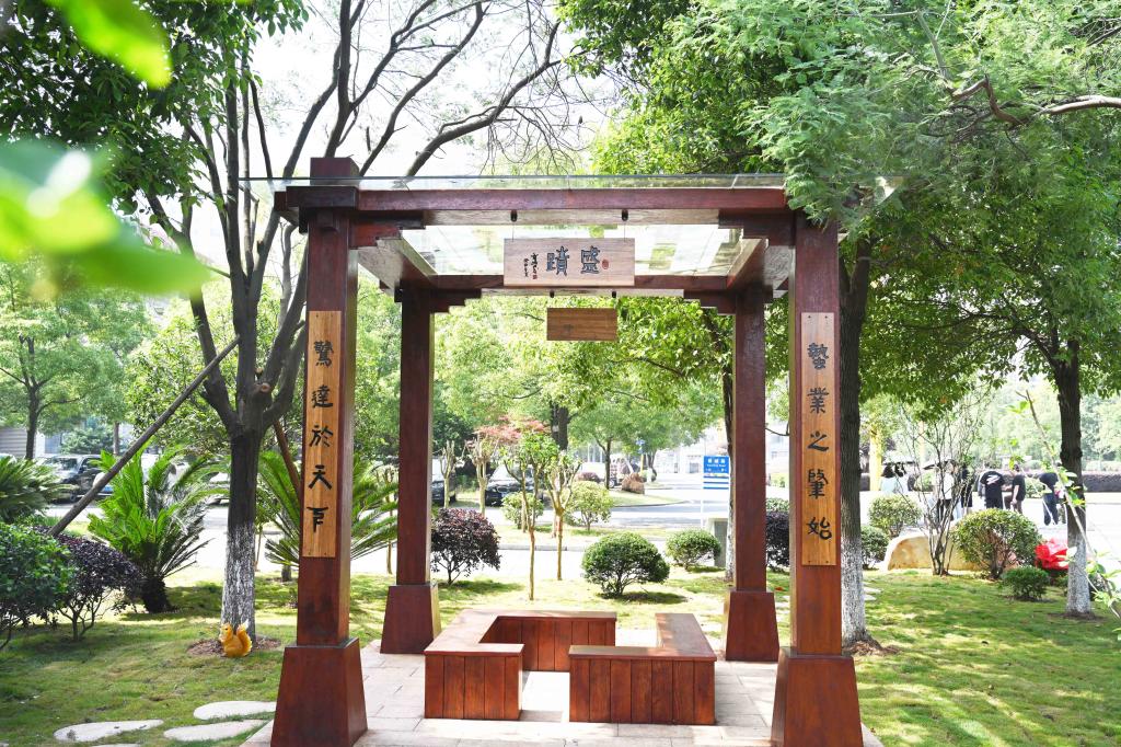 上午10点,由990111、990112班捐建的校园景观“足迹园”揭幕仪式举行,该景观位于建筑规划楼西入口,汤放华与校友及教师代表共同揭幕,并为校友颁发了捐赠证书。