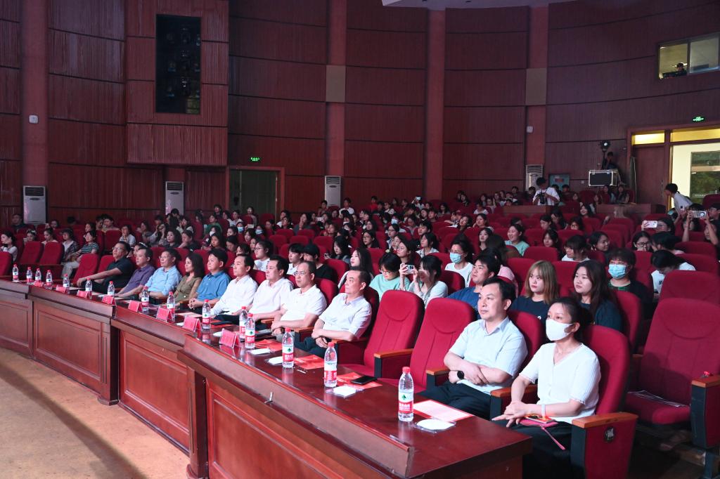 省委主题教育巡回指导组组长徐云波、副组长李可兴、巡回指导组成员詹玮,党委书记汤放华,校长何振,副校长雷存喜,纪委书记陈列尊,校党委委员、组织部部长吕贤军与近400名师生共同观看了演出。