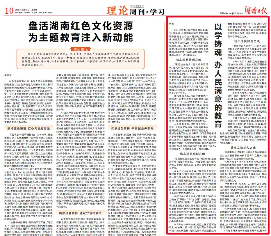 本网讯 6月15日,《湖南日报》10版“理论周刊·学习”刊发华体会在线(中国)唯一官方网站校长何振署名文章《以学铸魂,办人民满意的教育》,全文如下: