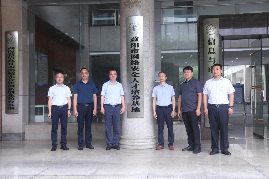 本网讯(通讯员 费雄伟)为加强和推进产学研结合,提升网络安全人才培养质量,6月19日上午,益阳市网络安全人才培养基地在我校揭牌。副校长雷存喜,市委网信办、益阳联通、奇安信科技集团相关负责人等参加活动。