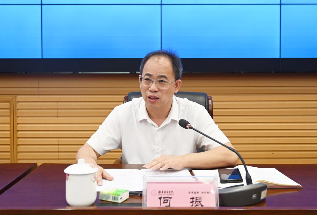 何振对各单位暑期工作推进落实情况作了简要通报,对大家放弃休息时间、加班加点所付出的努力表示感谢。他表示,为切实做好开学的各项准备工作,要做到“六个到位”:人员队伍务必要到位、教学准备务必要到位、后勤保障务必要到位、安全稳定务必要到位、学习培训务必要到位、关心服务务必要到位。他强调,要加强专业建设,组织好国家一流本科专业的申报,积极推进师范认证和工程认证的申报工作。要全面启动审核评估,广泛动员部署,细化评估方案,压紧压实工作责任。要精心培育教学成果奖,打造一批高水平课程(群)教学团队,统筹谋划国家级教学研究和教学成果奖。要做好新增硕士点申报工作,建好知识产权中心,开好“中非城市论坛”。要加大高层次人才引进力度,坚持“内培外引,双轮驱动”,大力引进青年优秀博士,力争引进高水平团队。他要求大家继续保持慎终如始、戒骄戒躁的清醒头脑,发扬不畏艰险、锐意进取的奋斗韧劲,努力开创新学期学校工作新局面!