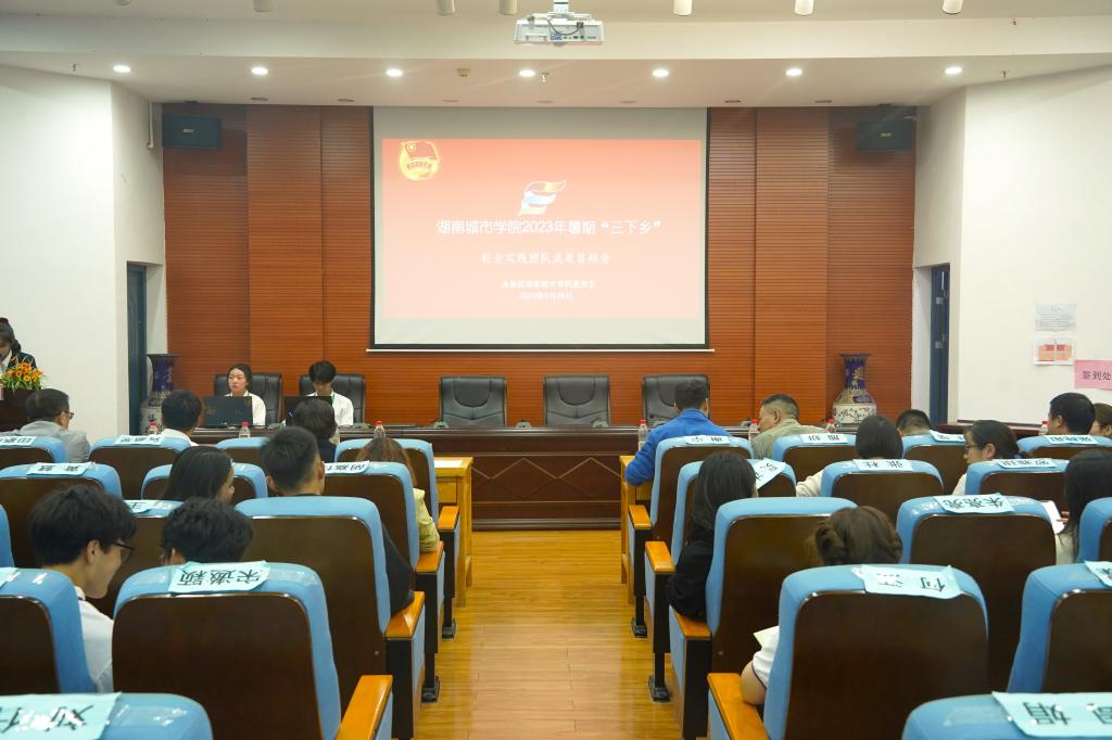 本网讯(通讯员 孔军)为检验我校暑期“三下乡”社会活动实践成果,增强大学生理论与实践相结合并灵活运用的能力,选树典型示范,不断深化实践育人成效,落实立德树人根本任务,9月26日晚,学校在土木楼828室举行2023年暑期“三下乡”社会实践成果答辩会。经初选,来自校团委以及各二级学院的14支“三下乡”团队参加了答辩会。经评委评选,“艺”路“童”行社会实践团、“规划兴乡,筑梦未来——大学生助力美丽乡村建设”实践团、“‘湘’遇风雨桥,文旅促振兴——华体会在线(中国)唯一官方网站安化风雨桥古建筑群保护调研”实践团获一等奖。