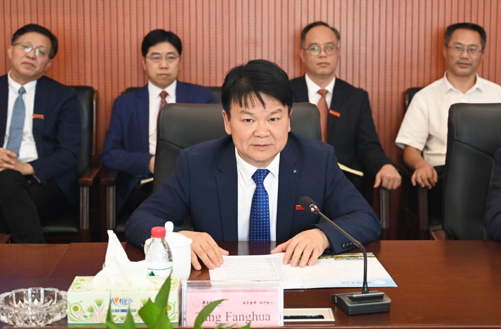 15日下午,见面交流会在办公楼一会议室举行。省教育厅党组书记、厅长夏智伦,益阳市副市长何军田,省教育厅国际交流处处长周芳友,校党委书记汤放华、校长何振、副校长雷存喜出席,相关职能处室和二级学院负责人参会。会议由汤放华主持。