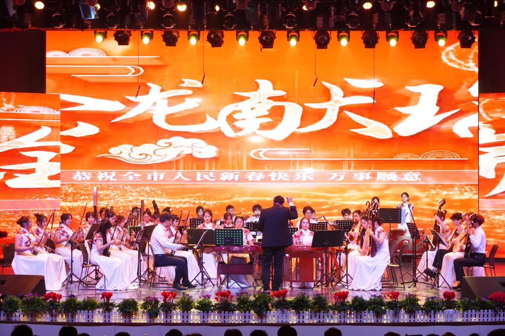 随着《春节序曲》的奏响,熟悉又动人的旋律瞬间点燃全场,也拉开了晚会的序幕,现场观众在丝竹管弦民乐演奏中感受中华民族热烈欢腾的节日喜庆氛围。舞蹈《白吟浪》《远山不远》《洞庭云梦》《云长》舞出了一心为民、身长报国的赤子情怀,舞出了新时代的主旋律、舞出了中国人的精气神;“山河犹在,国泰民安”传统民乐《九州同》、朗诵《我在一颗石榴里看见了我的祖国》用动人的乐章和激昂的嗓音歌颂了中华上下五千年的强盛,表达了铸牢中华民族共同体意识的信念与决心。