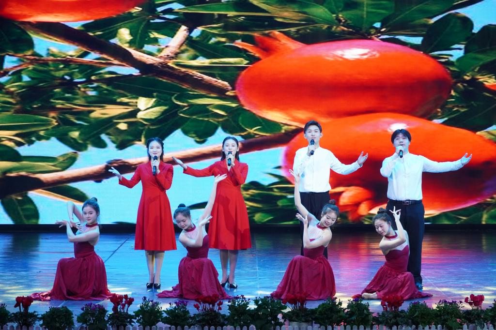 随后,室内乐《勇敢的心》、合唱《孤勇者》和《ritmo》依次上演,深刻诠释了中华儿女爱国爱民热烈而勇敢的心;情景剧《有我》为“清澈的心,只为中国”的战士陈祥榕续写一封家书,生动展现了新时代青年团结一心跟党走、斗志昂扬踏征程的坚定初心与使命;我校首届研究生带来的歌曲《这世界那么多人》,表现了硕士学子们踔厉奋发、笃行不怠,“研”续新梦想、开启新征程的精神面貌;乡村振兴特别节目《爱我苏溪》,村民用自己的“村歌”深情展示了我校乡村振兴定点帮扶村——苏溪的蝶变,深刻再现了学校积极响应国家号召,探索“可复制、可持续、可推广”的乡村振兴历程。“梦在飞,梦在飞,我的梦在黄河的浪尖尖上追,我的梦在高原的云端端中相随。”晚会在省精神文明建设“五个一工程”奖优秀歌舞《梦在飞》中徐徐落下帷幕。