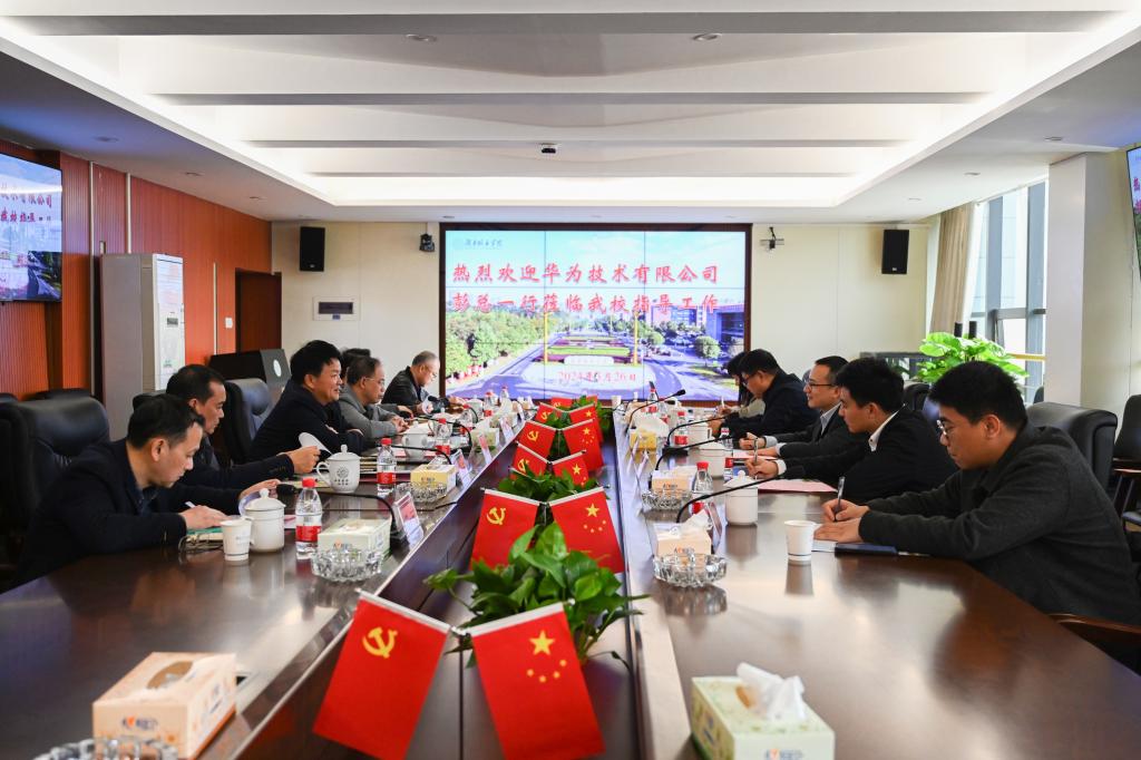 本网讯(通讯员 钟仁理) 3月26日,华为技术有限公司湖南政企副总经理彭军一行5人来校考察调研,就我校与华为技术有限公司校企合作举行座谈。党委书记汤放华、校长何振、副校长雷存喜出席座谈会。