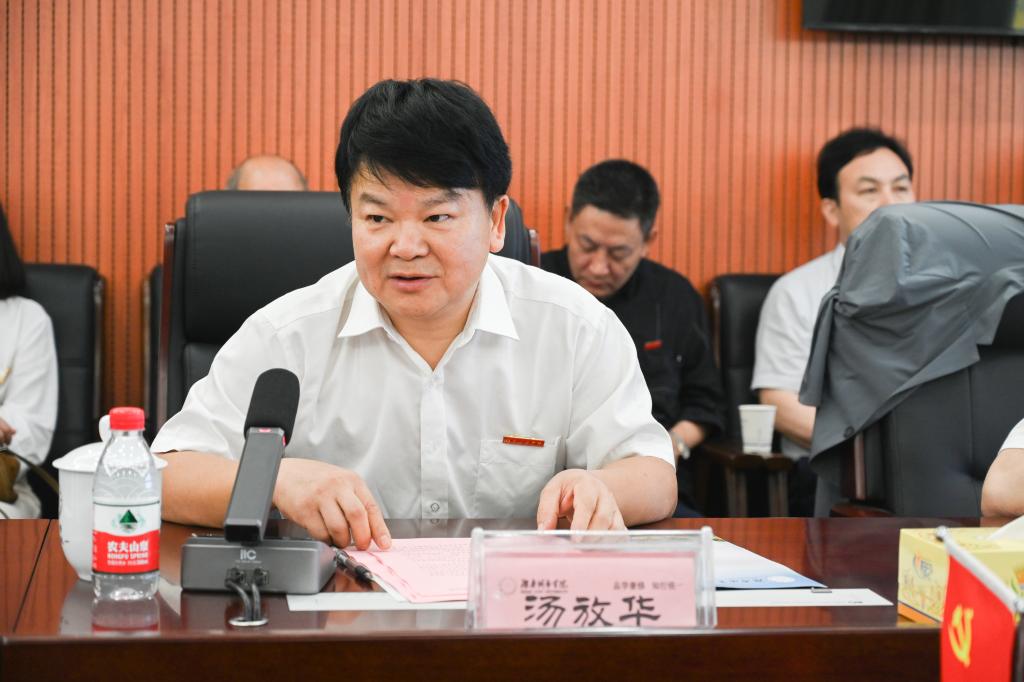 校党委书记汤放华代表学校对专家组莅临我校进行评估指导表示欢迎和感谢,并对学校给排水科学与工程专业进行了介绍。我校给排水科学与工程专业自1984年开办,至今正好40年。2021年,首次通过了专业评估,开启了给排水科学与工程专业建设新阶段。他指出,3年来,学校按照住建部专业评估相关要求加强建设,在教学质量、特色凝练、学生培养等方面取得了一定成绩,同时,也存在一些问题和困惑。此次专家组再次来校指导,是及时雨,必将进一步推进给排水科学与工程专业更高质量发展。学校将全力支持、配合专家组评估考查工作,认真听取专家组提出的宝贵意见与建议,确保评估工作顺利进行。