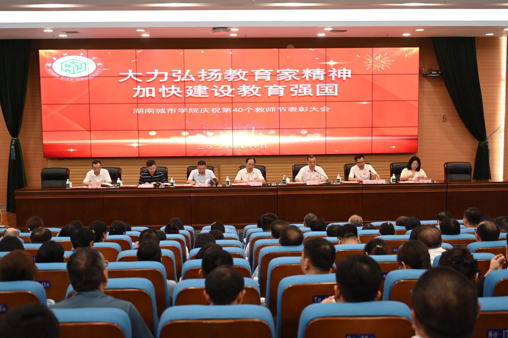 本网讯(通讯员 曾伟)9月10日上午,华体会在线(中国)唯一官方网站第40个教师节表彰大会在图书馆报告厅隆重召开。校长何振出席会议并讲话,校党委副书记袁志成主持会议。在家的校领导,学校各单位主要负责人、受表彰对象、教授、博士、青年教师代表共200余人参加会议。