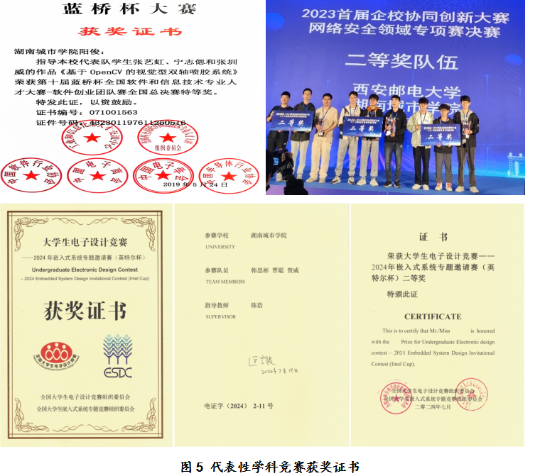 近年来,学校投入1200多万元新建了鸿蒙移动应用开发、人工智能等实验室,为学生提供宽敞舒适的实践环境。在校学生90%参与大创项目、学科竞赛和科研活动。毕业设计真题真做,校企共同指导。紧密对接行业需求,鼓励和支持学生参加行业企业认证考试。2017年,计算机科学与技术专业开设“新工科实验班”,在省内同类高校中率先开展新工科教育的改革与探索,逐步拓展到电子信息工程、通信工程、人工智能等专业。通过新工科建设,学生实践创新能力提升显著。近年来,学生累计获省级及以上学科竞赛奖励380多项,立项各级大学生创新项目120多项。人工智能专业学子在2024年英特尔杯全国大学生电子设计竞赛嵌入式系统专题邀请赛中获全国二等奖。通过华为云人工智能开发者认证、电子设计工程师认证、华为HCIP和HCIE认证的学生达2400多人。