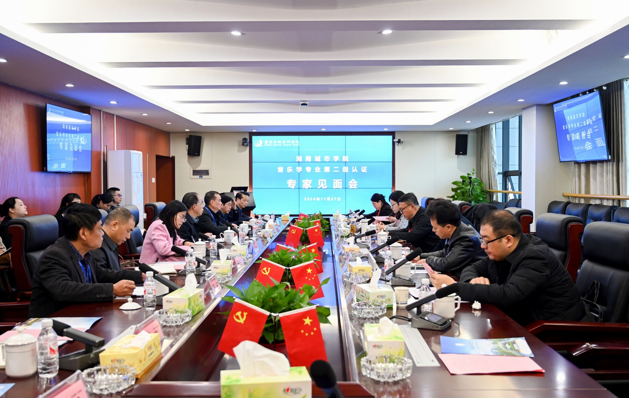 本网讯 11月27日上午,我校音乐学专业第二级认证专家见面会在办公楼一会议室召开。专家组全体成员,校长何振、副校长雷存喜出席见面会。