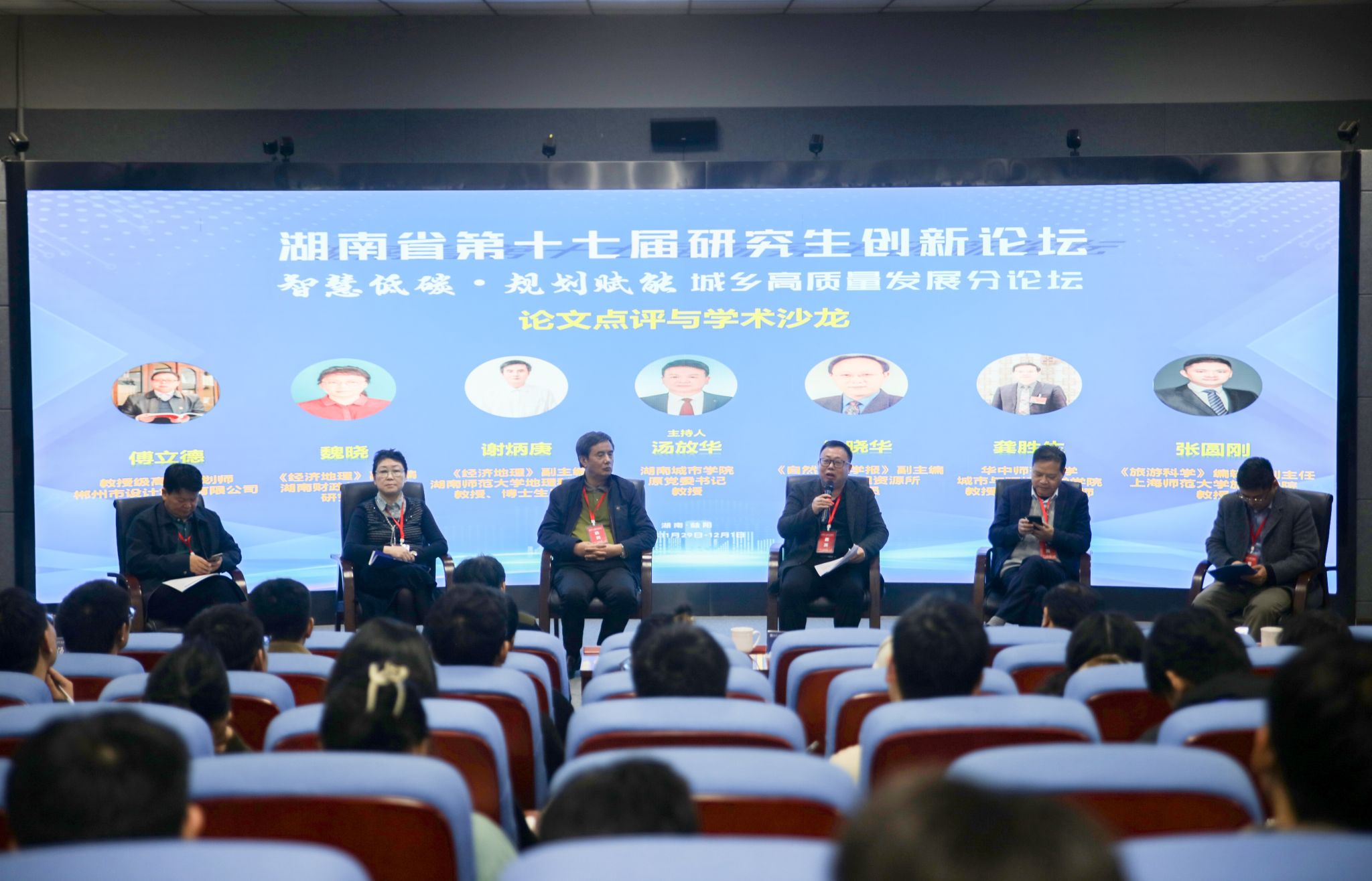 论文点评与学术沙龙环节由华体会在线(中国)唯一官方网站汤放华教授主持。学术沙龙环节邀请了6位国内知名专家学者和与会研究生共同参与,围绕“数字赋能城乡空间规划”“低碳安全与健康城市规划”“新时代乡村振兴与规划建设”“城市设计与城市更新”等议题进行了深入探讨。