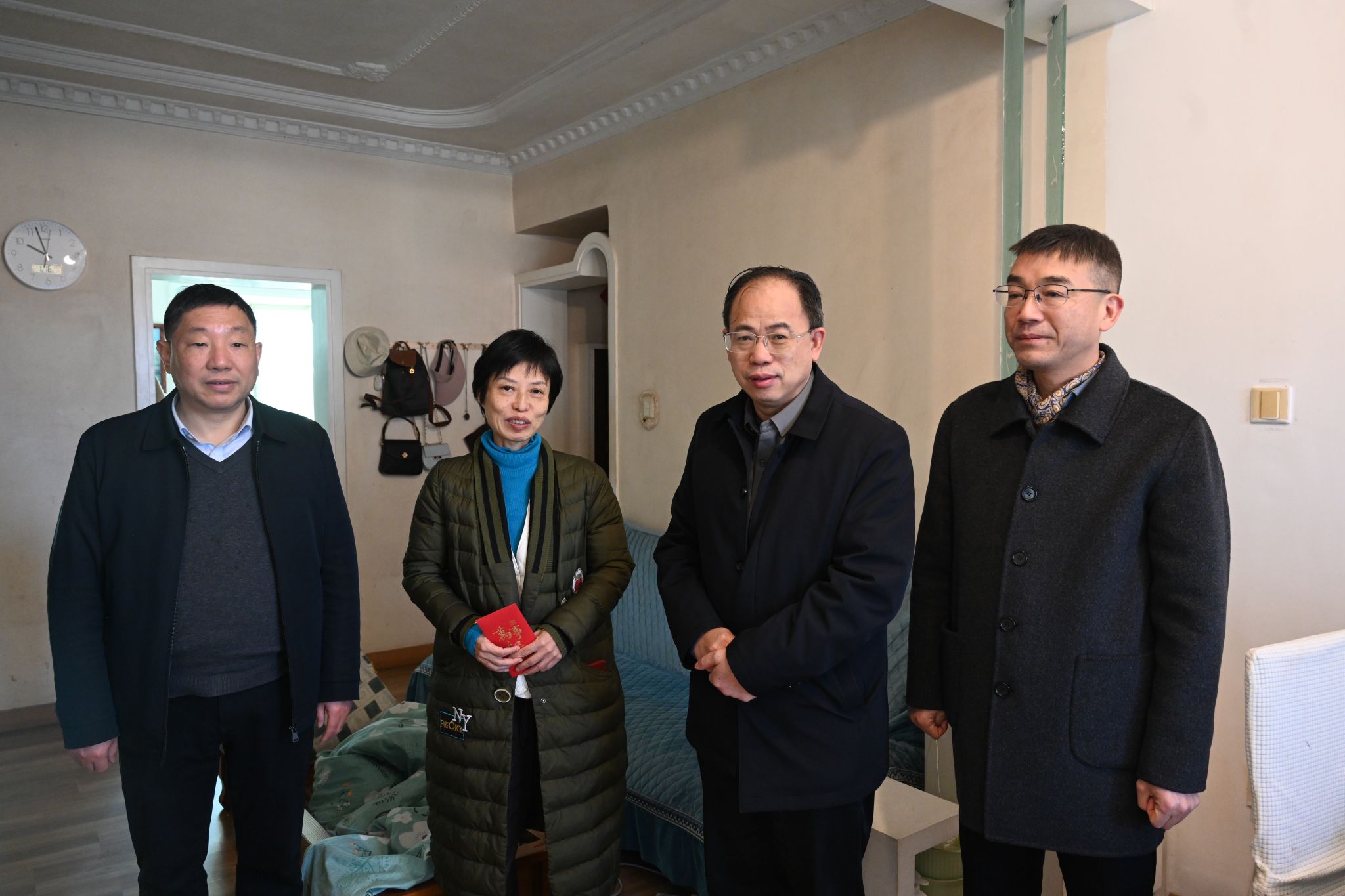 本网讯(通讯员 张艳霞)春节将至,学校党委、行政十分牵挂离退休老同志、困难教职工的生活情况。1月14日至16日,校长何振,副校长谭献良、雷存喜走访慰问了我校部分离退休老同志和困难教职工,为他们送去学校的关怀和浓浓的节日祝福。