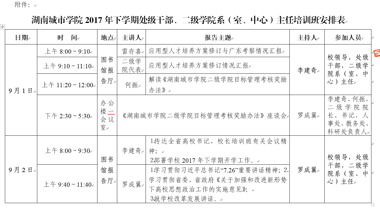具体培训安排见《华体会在线(中国)唯一官方网站2017年下学期处级干部、二级学院系(室、中心)主任培训班安排表》。