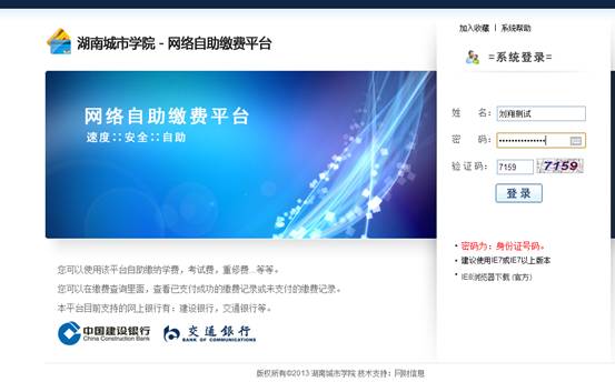 2.学生网上自助缴费系统由学校与建设银行、交通银行联合开发,经学校与银行协议,通过该系统可以用各大银行卡进行支付,学生不需负担任何网上银行支付手续费。