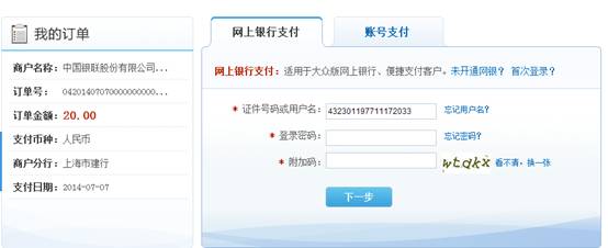 6. 点击“立即支付”并“确认”后将跳转至银行支付页面,请同学们核对页面左侧的商户名称应为“华体会在线(中国)唯一官方网站”或者为“中国银联股份有限公司”,核对完成后,请按提示选择支付方式完成缴费。