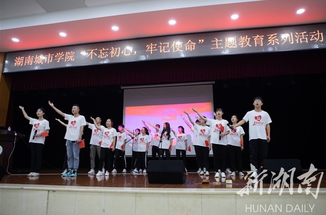 新湖南客户端6月5日讯(通讯员 谢立新 周洁 林俊任)烈火熔铸初心,忠诚引领使命。6月3日晚19:00,一场声势响亮的“不忘初心、牢记使命”红色主题教育活动在华体会在线(中国)唯一官方网站大学生活动中心拉开帷幕。700余名学生党员、入党积极分子齐聚一堂,共同接受了一份来自“初心与使命”的特殊洗礼。活动借助咏诵、党课与合唱等形式,传递出党对一代青年学生党员成长成才的殷切期待,激励他们奋发向上、担当作为、无私奉献,勇做时代的弄潮儿和奋斗者,为广大青年学生树立学习与生活的榜样。