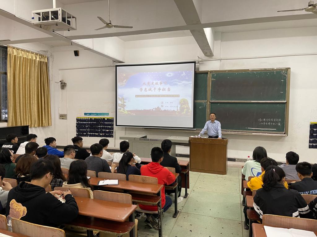 在主持人的引荐下,龚彬书记开始为同志们讲课。龚书记讲述了三个党的故事,其一为“雷公为啥不劈死毛泽东”。面对陕甘宁边区两位农民的言论,毛泽东不仅没有迁怒于他们,草草了事,而且出乎意料的调查民生,为两位农民解决问题。作为学党员及干部,同样应该如此,面对不同的声音,我们首先应当自我反省,而不是一味从他人身上找问题。“知屋漏者在宇下,知政失者在朝野”,只有切实站在群众的角度思考问题,才能真正地为群众解决问题。故事其二为“毛泽东在中央苏区‘鬼都不上门’挨整”。一代伟人的人生历程并非一帆风顺,金子也有被埋没的时光。作为学生党员及干部,面对不公平的待遇或是困境,不该自暴自弃,应当坚守初心,坚定信念,砥砺前行。同样,面对失意或是挫折,应当平静内心,厉兵秣马,不断提升。故事其三为“共产党一昼夜奔袭120公里徒步行军”。共产党人敢死敢拼,这样的精神震撼人心,同样作为学生党员及干部,有责任也要有担当,在人群中应当努力发挥先进模范作用。