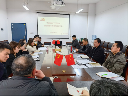 2022年3月1日下午,机械与电气工程学院在院会议室313室召开新学期意识形态风险研判会,分析讨论新学期学院意识形态工作可能出现的新情况和新问题及应对措施。学院党总支成员、院长助理、各系室中心主任、教工党支部书记及全体辅导员参加。会议由党总支书记张光富主持。