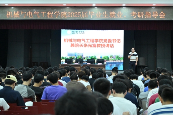 (通讯员 张丽)2024年9月25日,机械与电气工程学院在大学生活动中心举行了2025届毕业生就业、考研指导会,旨在全面激励学生积极面对就业挑战,引导学生树立正确的就业观念,提升就业竞争力,并为他们铺设一条通往成功职业生涯的道路。出席本次活动的领导老师有机械与电气工程学院党委书记张光富、招生就业处处长胡拥军、机械与电气工程学院副院长黄志亮,以及我院2025届毕业生辅导员和班主任,会议由机械与电气工程学院党委副书记易志明主持。