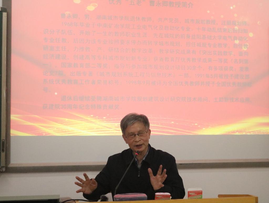 曹永卿,城市规划教授,注册规划师。1991年5月被授予建设部系统优秀教育工作者荣誉称号;1998年9月被评为全国优秀教师并授予全国优秀教师称号。退休后继续受骋华体会在线(中国)唯一官方网站规划建筑设计研究院技术顾问,主助新技术应用,获建院30周年纪念特殊贡献奖。曹永卿教授以“不忘初心,砥砺前行-我的教书育人”为题分享了个人成长奋斗的经历,勉励青年学生脚踏实地,努力奋斗,实现人生价值。