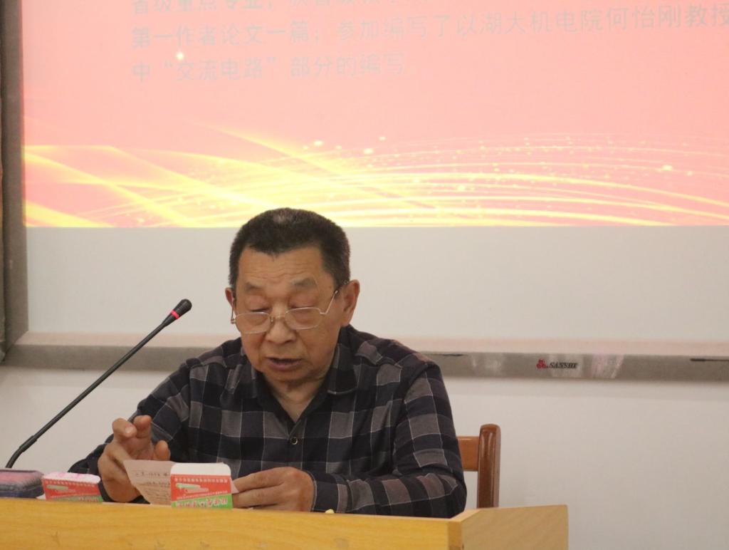肖玉衡,物理副教授,曾任华体会在线(中国)唯一官方网站物电系系主任、系党支部书记等职务,现任华体会在线(中国)唯一官方网站关工委副主任。肖主任以“我以忠心当教师”为题分享了自己从教四十多年的经历,他一直以“忠于党的教育事业”为座右铭,听党话,跟党走,忠心待学生,潜心功教学,勇于担当,坚持为党育人、为国育才。