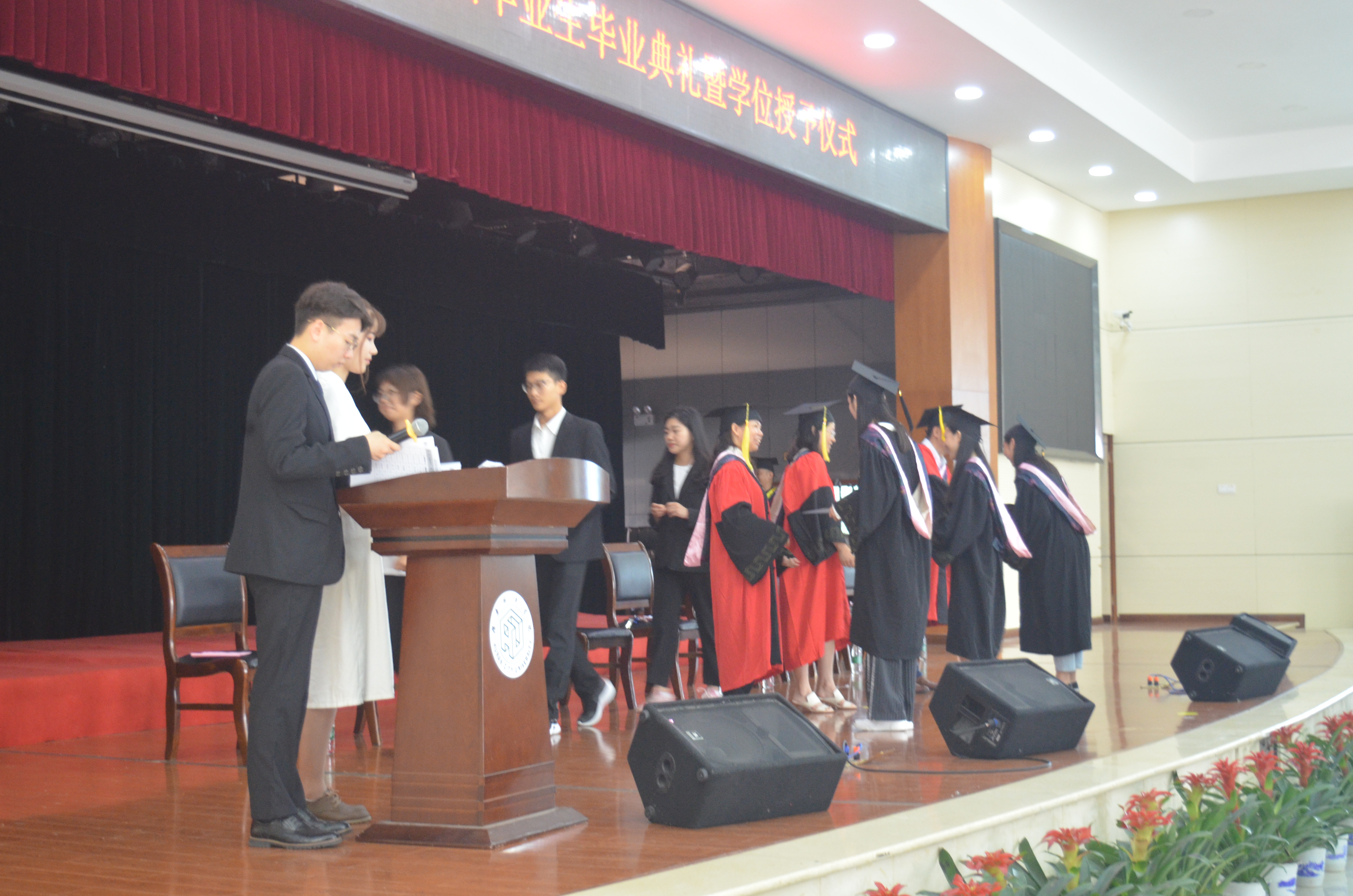 2019年6月19日,管理学院2019届毕业生毕业典礼暨学士学位授予仪式在学校学生活动中心举行,出席本次仪式的有管理学院院长孙倩教授,党委书记徐习军教授,党委副书记王润华教授、副书记蔡英杰老师,汤腊梅教授、薛姝教授、龙敬庭副教授、李双清博士、尹罡博士、周琼主任及全体辅导员老师。管理学院2019届全体毕业生准时到场与会。