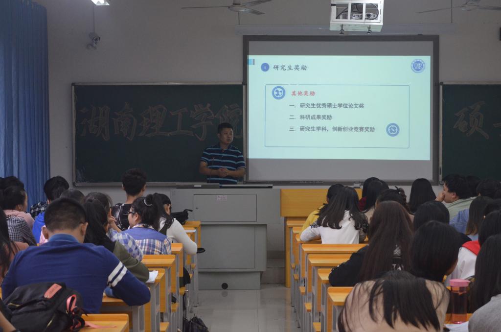 2018年9月27日15:10,湖南理工学院硕士招生活动在管理楼306顺利召开。本次活动的主讲人是湖南理工学院教授田小勇,出席活动的嘉宾有管理学院分团委书记李姗和辅导员张力,管理学院部分大三大四学生按时到场与会。