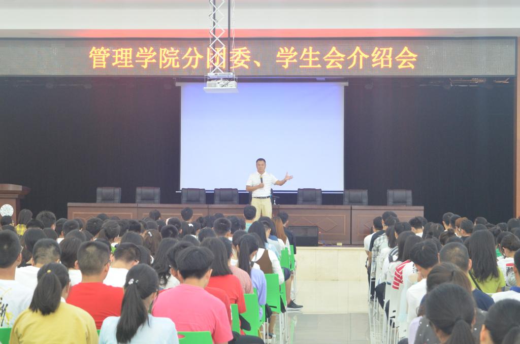 2018年9月12日8:00,管理学院分团委、学生会介绍会在新食堂三楼学生活动中心顺利举行。管理学院党委副书记贺望林、学工办全体老师、团学会主席团成员和各部门代表出席本次会议。