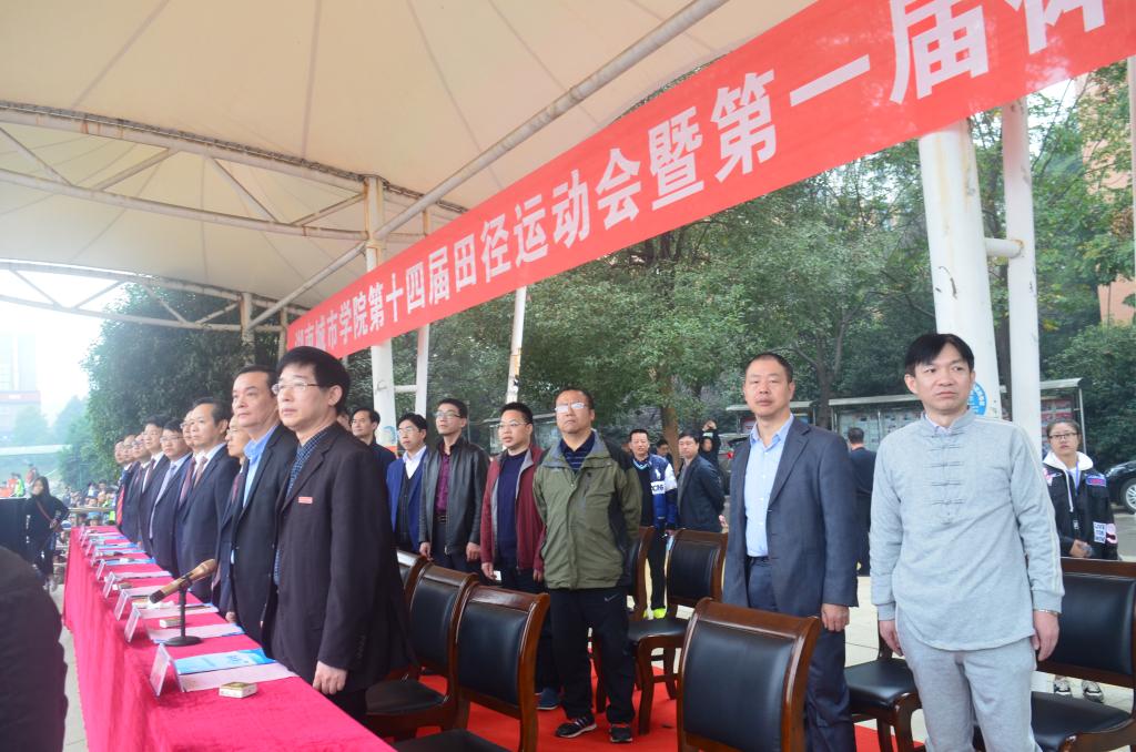 2017年11月10日,华体会在线(中国)唯一官方网站第十四田径运动会暨第一届体育文化节开幕式在田径场顺利举行。本次开幕式由学校党委委员、副校长雷存喜教授主持,出席本次开幕式的领导有党委书记罗成翼,校长李建奇,党委副书记汤放华,副校长郑卫民、何振、雷存喜、谭献良、刘辉煌、夏宏宇,党委委员罗新湘。