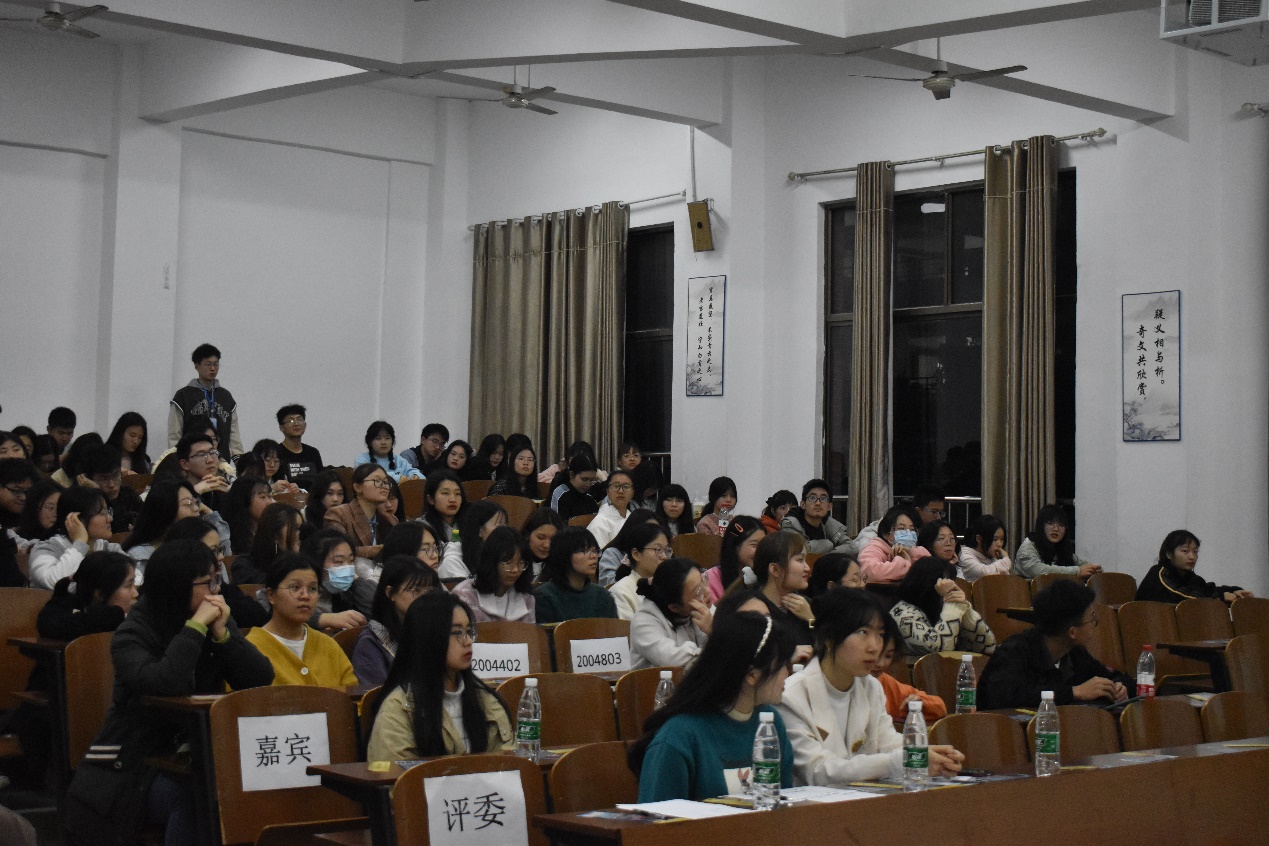 为丰富大学生课余生活,锻炼同学们的思维逻辑能力,2021年4月9日晚7点,管理学院于一教学楼举办了第一届个人辩论赛。本次辩论赛由学习部主办,主席团及辩论队成员担任评委,大一全体学生到达现场观看比赛。