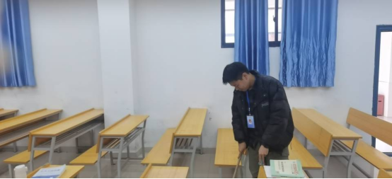2021年12月17日下午,管理学院20余名干部自觉主动开展楼栋及教室清理活动,以保障12月18日全国英语大学生四六级英语考试的顺利开展,同学们早早来到教室,认真细致对教室里面的卫生进行清理与打扫。