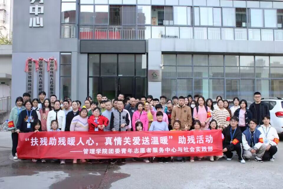 爱心相伴,助残同行。为助力残疾人无障碍融入社会,促进社会和谐发展,管理学院于11月23日下午在益阳市残疾人托养服务中心开展“扶残助残暖人心,真情关爱送温暖”主题志愿活动。此次活动由胡威朋老师、管理学院团委青年志愿者服务中心与社会实践部带领,管理学院志愿者参与。