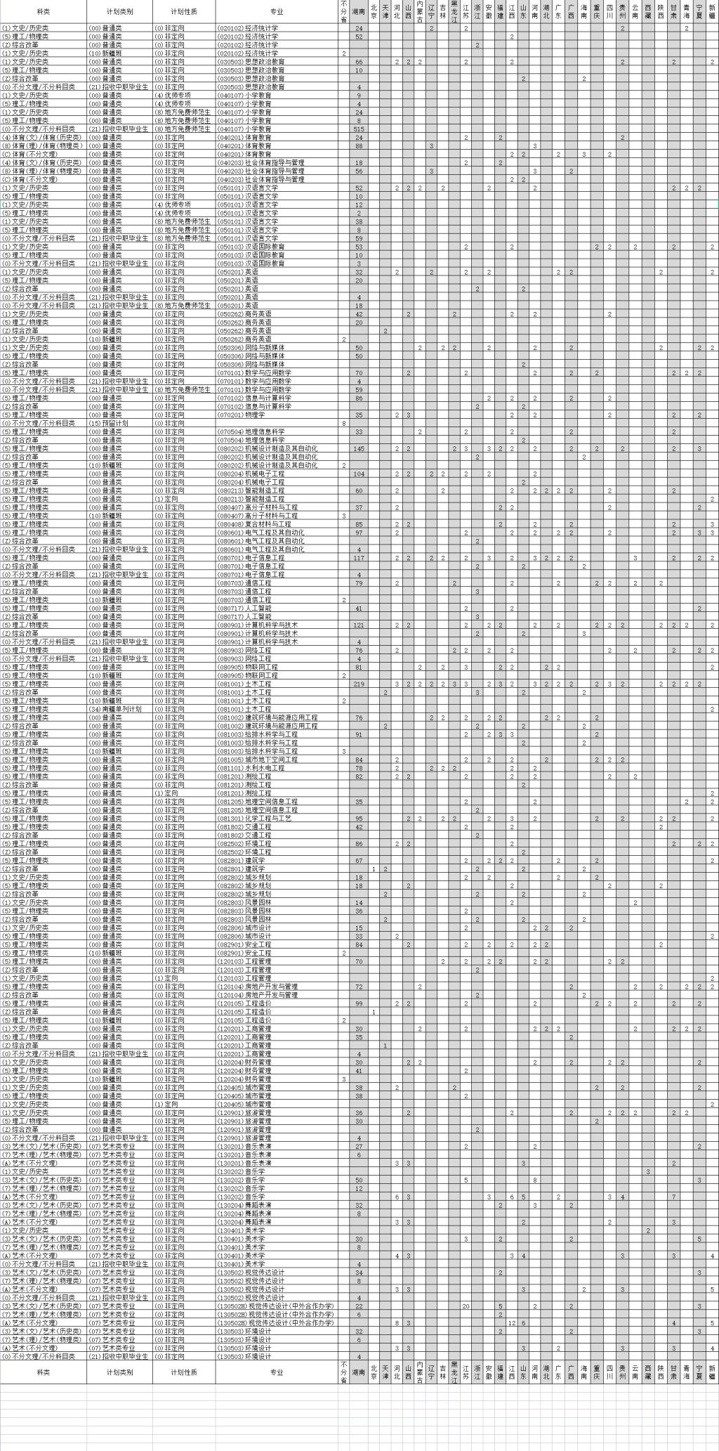 2022年分省分专业招生计划