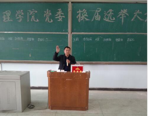 选举活动开始,全体起立,奏国歌,行注目礼。莫连光书记代表上一届党委委员会作工作报告。报告内容包括党委学习贯彻落实党的十八大,十八届三中、四中、五中、六中全会和习近平总书记系列重要讲话精神,以及贯彻执行党的路线、方针、政策和上级党组织决议的情况;并总结党委开展教职工思想政治工作和大学生思想政治建设情况、开展“两学一做”专题教育活动以及自身建设情况。报告还向大会报告了党费收缴、使用和管理情况,活动经费使用情况。报告还总结了完成学校中心工作过程中发挥党委作用的经验及做法;目前存在的问题,并对新一届党委提出建议。全体党员举手表决通过该报告。