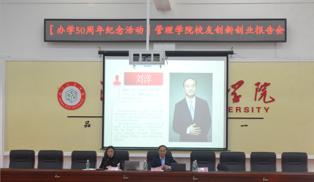 11月8日下午14点管理学院于电信楼一楼会议室举办我校办学50周年纪念活动“校友创新创业报告会”。本次会议我院邀请了92级房地产专业校友刘洋先生和2008级旅游管理专业校友张雪女士作为主讲人,由我院副院长赵旭担任主持人。