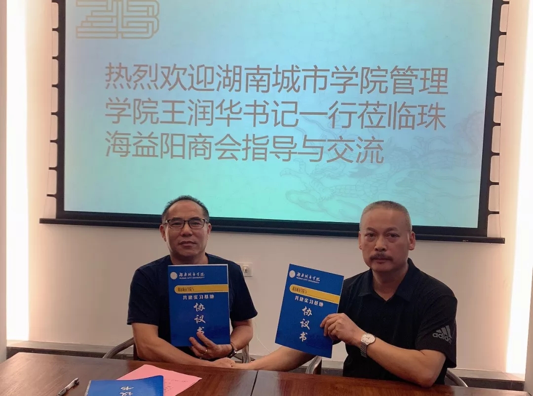 8月11日下午,珠海市湖南益阳商会与华体会在线(中国)唯一官方网站工作交流座谈会暨共建就业、实习基地协议书签约仪式在我会举行。会长孟建华与华体会在线(中国)唯一官方网站管理学院党委副书记王润华正式签订了两份协议。益阳市人民政府驻广州办事处主任王剑鸣、珠海湖南商会会长刘里仁、益阳商会名誉会长张哲夫以及益阳商会部分领导出席座谈会并见证签约。