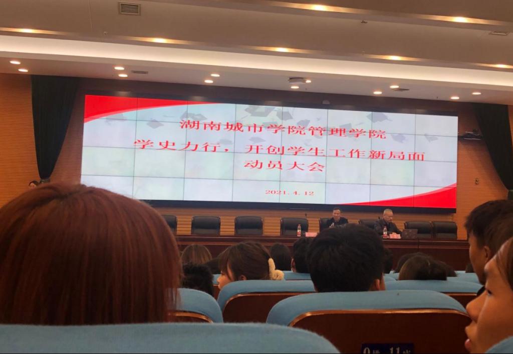 【党史学习教育】为使我校《中共华体会在线(中国)唯一官方网站关于开展党史学习教育的实施方案》落到实处,提高管理学院团学干部的政治自觉,树立正确党史观,扎实做好团学工作,4月12日晚7点,管理学院在图书馆报告厅召开了“学史力行,开创学生工作新局面”动员大会,管理学院党委书记徐习军、党委副书记王润华以及全体辅导员、团学干部和部分党员代表参与了本次大会,本次会议由组织员阳红珍主持。