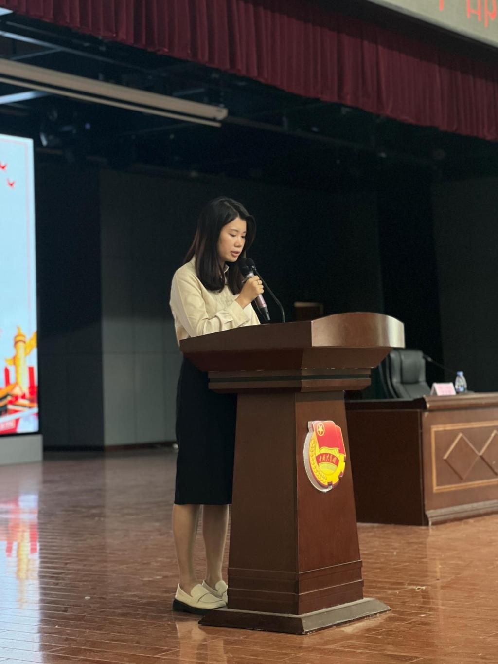 大会最后由管理学院学生会主席团代表唐新喜代表新一批的学生会干部作表态发言,然后由学工办老师向各自分管部门的学生会干部们颁发聘书。