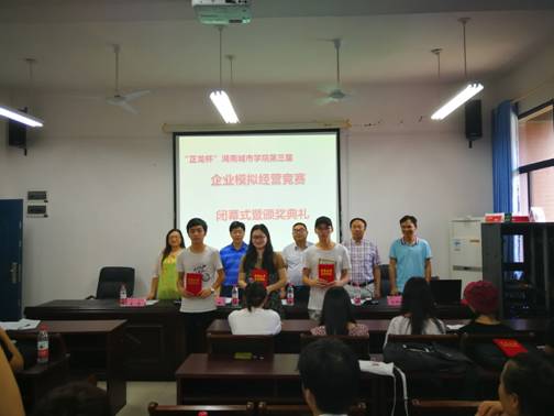 大赛闭幕式在管理楼504室隆重举行,管理学院李教明院长担任主持。大会先由大赛裁判作赛事总结,接着由华体会在线(中国)唯一官方网站教务处张伟处长宣布获奖名单,华体会在线(中国)唯一官方网站郑卫民副校长、张伟处长及管理学院王莉副院长分别为大赛一二三等奖获得者颁奖。最后,郑卫民副校长为大赛致闭幕词,他认为本次大赛组织得力,赛出了成绩和水平,勉励同学们提高创新创业能力,在更高级别的竞赛中取得更好的成绩,并宣布大赛胜利闭幕。