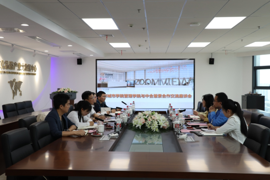 下午,中合汇景(湖南)文旅投资控股公司高级副总裁、党支部书记、中合慧景规划设计公司总院常务副院长黄程,中合汇景(湖南)文旅投资控股公司人事行政部总监陈乐宁,中合慧景规划设计公司总院副院长彭赛,中合慧景规划设计公司总院项目运营中心总监夏民,中合汇景规划设计公司总院国土空间规划所副所长胡显升热情接待了孙倩院长一行。校企合作座谈会上,双方就旅游管理专业人才培养方案优化、旅游管理专业实习就业基地建设、共建创新创业平台、企业导师制等话题开展了深入交流,达成了初步合作意向。