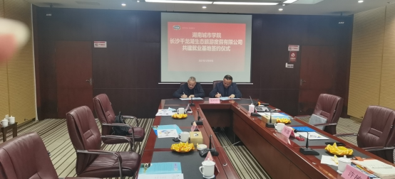 在长沙千龙湖生态旅游度假有限公司,王润华书记和长沙千龙湖生态旅游度假有限公司董事长陈露,进行了深入的交流,并代表双方签定了毕业生就业基地建设协议书,并举行挂牌仪式。