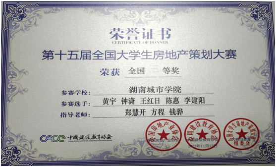 2、举办了第十五届全国大学生房地产策划大赛全国总决赛,展示了来自全国各地高校的优秀房地产策划作品,我校团队获得国家三等奖。