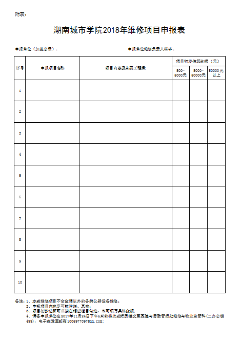 附表:《华体会在线(中国)唯一官方网站2018年维修项目申报表》