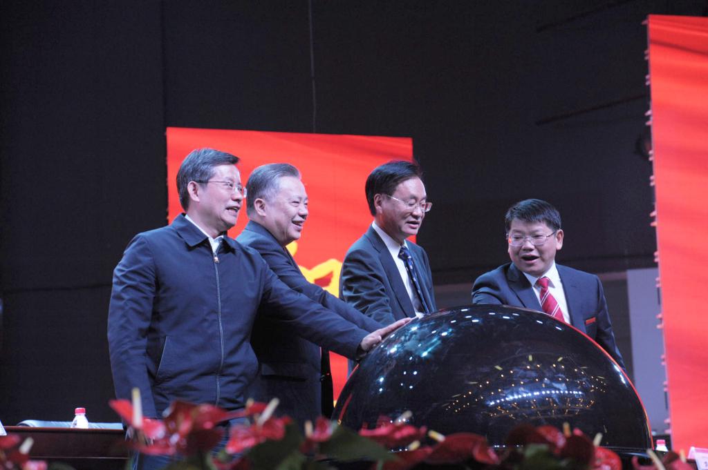 唐之享、李友志、瞿海、罗成翼共同启动水晶球,标志华体会在线(中国)唯一官方网站纪念办学50周系列活动启动。