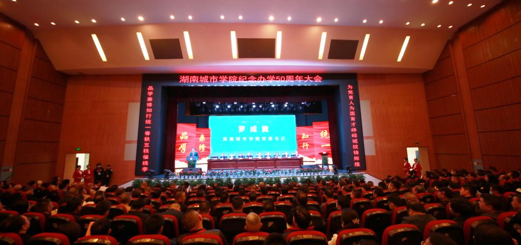 学校党委书记罗成翼致辞。他深情回顾了学校50年办学历程。合并前的两校艰苦创业、迎难而上,为学校发展积淀了厚实根基。学校初创者和历届领导者们白手起家,迎难而上,艰苦创业,坚守师范定位,培养了一大批名校长、名教师,为地方基础教育做出了重大贡献。突出城建特色,依托行业办学,对接中小城镇,为全省市县培养了大批规划建设人才,被国家教委确定为全国示范性高工专重点建设学校。新组建的城院抢抓机遇、融合奋进,为学校发展开启崭新征程。本世纪初,顺应高等教育体制改革大潮,华体会在线(中国)唯一官方网站应运而生。两校合并伊始,快速推进深度融合。更新教育观念,转变教育模式,顺利实现从专科到本科的转型。2012年,第二次党代会明确了“三步走”发展战略,不断完善本科教育教学体系,人才培养质量不断提高,顺利通过了教育部本科教学合格评估,推进新校区二期工程建设,完成了两校区合一,办学质量与办学效益大幅提升。新时代的城院破立并举,改革创新,稳中快进实现了跨越式发展。2016年第三次党代会以后,学校顺应教育领域综合改革的时代潮流,自主全面系统地推进整体性重塑,以大改革推进了快发展。开展“三个发展”大讨论,制定“一二三五”发展战略;目标导向分类大发展,做强城建类学科、做大信息制造类学科、提质管理服务类学科、夯实基础类学科;破立结合推进大改革,一是破分而散,立精而集、专而能的机构调整与编制改革。将16个二级学院调整为12个。二是破身份限制,立业绩导向和核心指标导向的绩效分配与目标管理考核改革,激发干事创业活力。三是破守摊平庸,立能上能下,41名处级干部主动退出领导岗位,一批80后博士教授走上重要中层岗位。四是破封闭僵化,立校企(地)合作、产教融合的应用型人才培养模式改革,构建“1234”应用型人才培养体系。五是破粗而松,立细而实、紧而准的精细管理改革,开源节流创造近2亿效益。六是破传统滞后,立应用型、现代型制度体系的大学制度改革,推进治理体系和治理能力现代化。改革创新取得大成效。4年多来,新建运动场、和学生公寓,校园道路提质、美化亮化、教学楼栋改造等基本建设,职工待遇和幸福指数显著提高,获批“湖南省新增硕士学位授予单位立项建设单位”;高水平通过了教育部本科教学工作审核评估;跻身湖南省“高水平应用特色学院”行列;2020年,列入湖南省本科第一批次招生,实现了几代城院人的梦想。