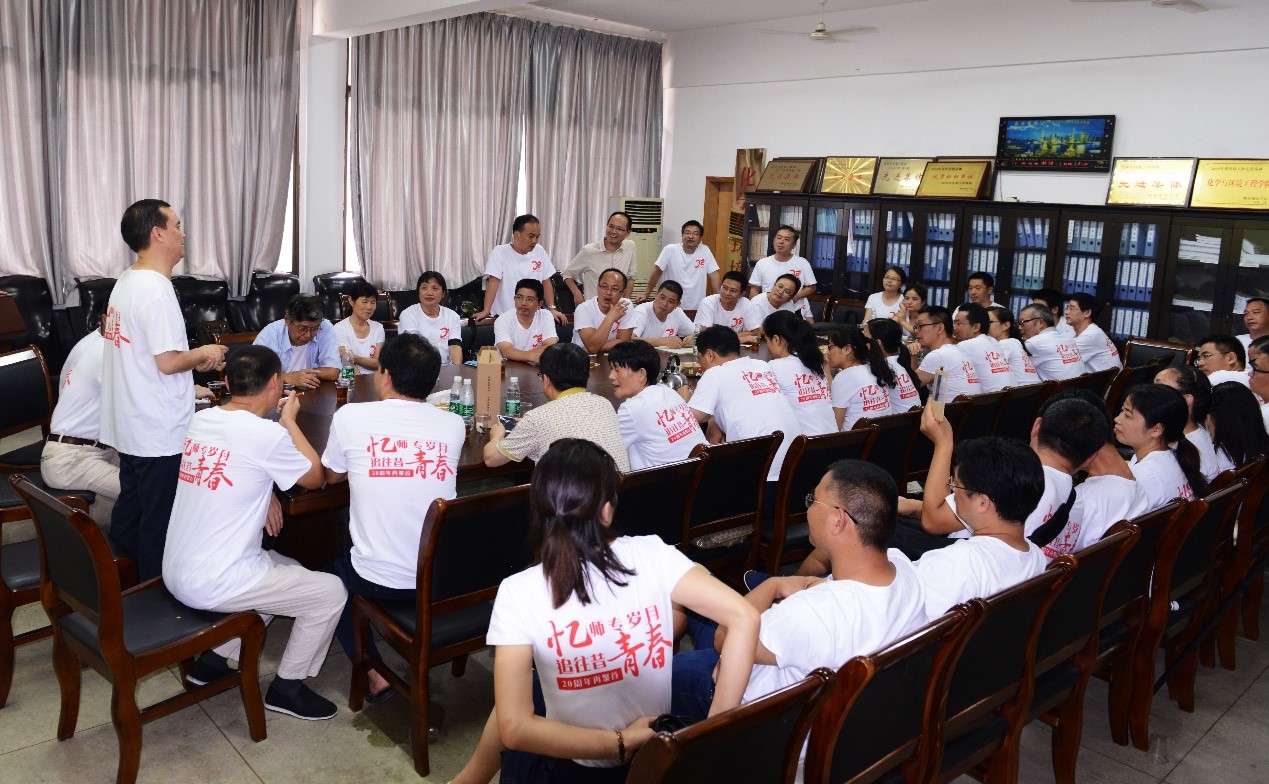 8月8日上午,化学94级校友在化工楼308会议室举行毕业二十周年聚会。学校校党委委员副校长、原班主任雷存喜,校党委委员组织部部长罗新湘,校友办副主任何冬林,原化学系主任李月娥,原化学系党总支书记项望楚,原班主任刘石泉,以及龙立平、文瑞明、熊文高、钟桐生、汤青云、李旺英等老师参加了聚会。
